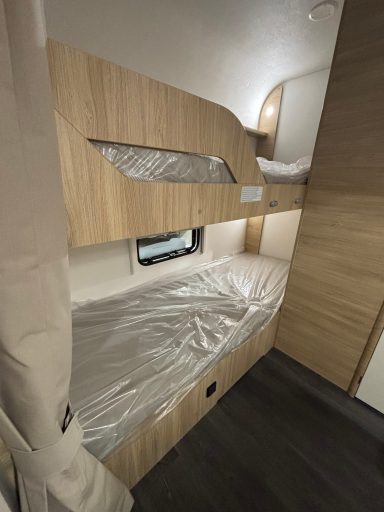 Cama matrimonio y dos literas fijas más un comedor convertible en cama doble.